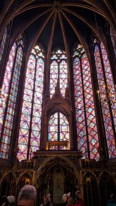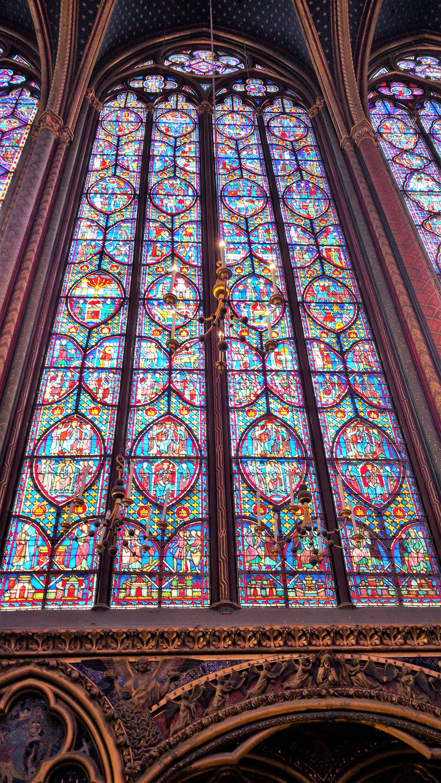 In 1241, King Louis IX of France – Saint Louis – acquired the crown of thorns, part of the cross, the iron from the Holy Lance, the sponge and other relics related to Jesus’ martyrdom from King Baldwin II, the last Latin emperor of Constantinople. When he brought these treasures to Paris, Louis IX commissioned the architect Pierre de Montreuil to design an exceptional place in which to keep them. The chapel, which was consecrated in 1248, has almost no walls, and instead has enormous stained-glass windows that let in the most amazing light.