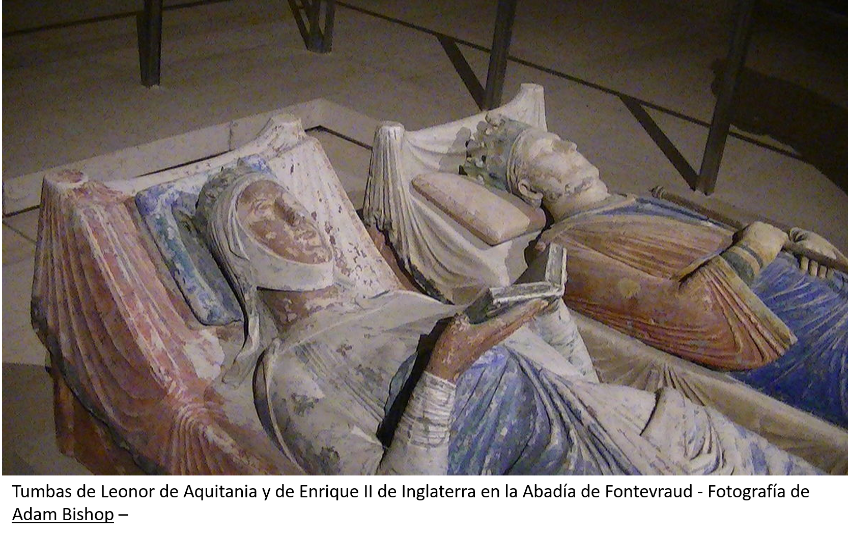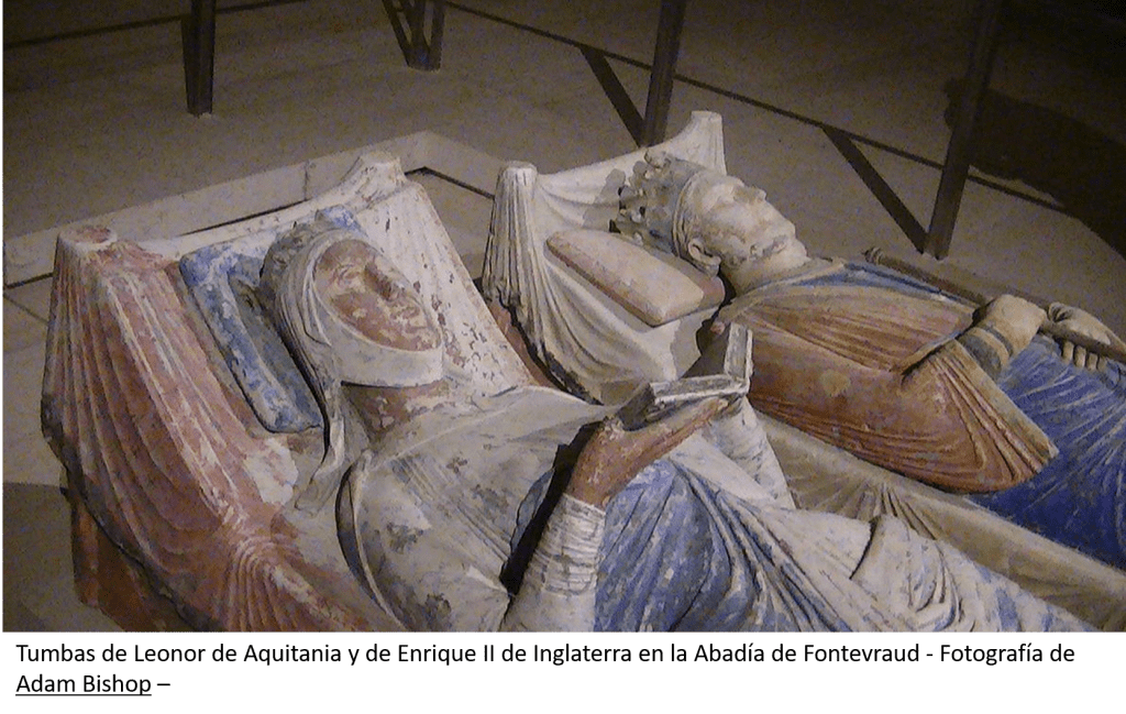 Tired after this last battle to defend Aquitaine, Eleanor retired to the abbey of Fontevrault, in Anjou, where she died in 1204. She and her husband, Henry II of England, rest together in this abbey.